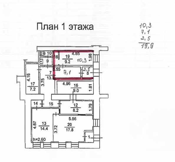 общая площадь: 19,9 м2