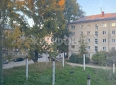 Большое широкое окно с видом на двор,соседнее здание достаточно далеко