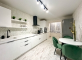 Новому собственнику остается встроенная мебель (шкаф-купе и 3D камин), а также кухонный гарнитур.