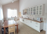 Этот просторный дом площадью 160,7 квадратных метров удобно разделен на два этажа. На первом этаже расположены светлая прихожая, просторная гостиная с камином, большая кухня с высоким потолком, гостевой санузел, техническое помещение.