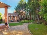 Благоустройство на территории, дорожки из натурального камня, газон, живой пруд среди сосен, Декоративные кустарники, взрослые ясени.