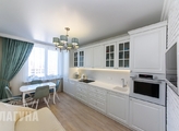 Ремонт выполнен из устойчивых к эксплуатации, дорогих и качественных материалов, корпусная мебель была выполнена на заказ.
